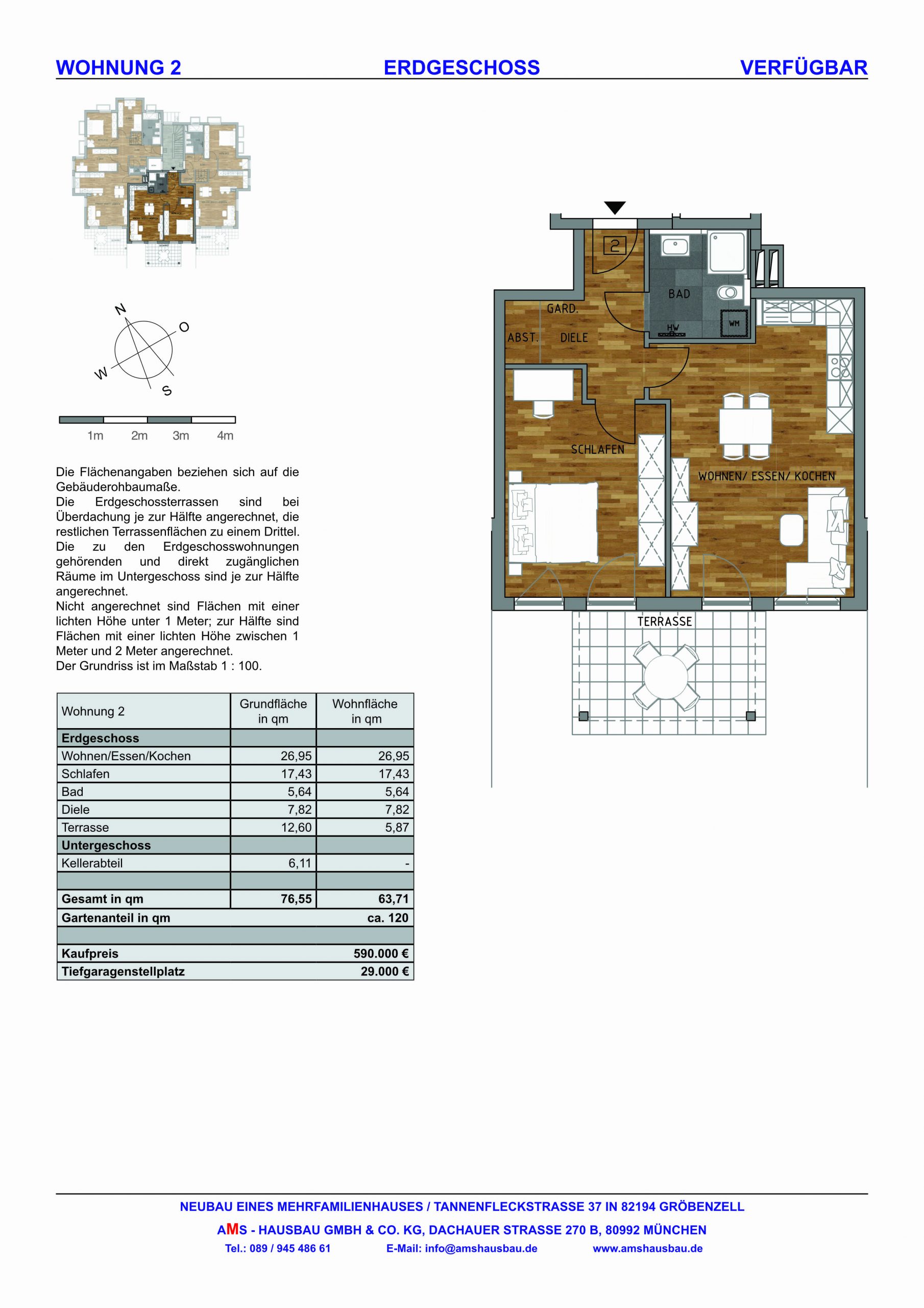 - Helle und sonnige 2 – Zi.-Wohnung im Erdgeschoss mit eigenem Garten in einem Neubau mit 8 Wohnungen in Gröbenzell